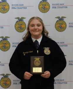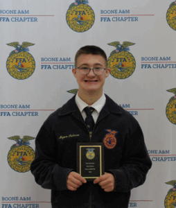 BOONE, Iowa—The Boone A&M FFA Chapter held its annual FFA Awards Banquet on Sunday, April 27, 2025 at Boone High School. FFA members and families gathered to celebrate the accomplishments of the past year. Following the meal, the awards program included membership degrees, awards, recognition of member participation, and installation of the newly elected Chapter Officer team. Awards included: