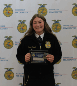 – Emma Wiebold received the 2025 Outstanding Leadership Award. This award recognizes a student for their leadership skills, dedication to FFA, and service to their school and community over the past four years.