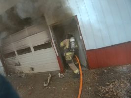 The on-duty crew arrived finding debris burning against a commercial shop and storage building with heavy smoke coming from the shop area. Firefighters were able to quickly bring the exterior fire under control and slow the advance of the fire burning within the structure. Adjacent stalls were locked and entry was forced to control the fire from spreading further throughout the building. Firefighters remained working on scene for approximately the next 2 hours. There were no injuries to civilians or firefighters. The cause of the fire remains under investigation.
