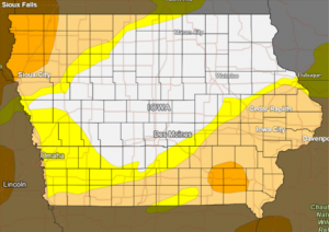 DES MOINES, Iowa—Rain that fell across the state last week is helping ease drought conditions, especially in southern and southeast Iowa. The new National Drought Monitor map shows no more Severe Drought in southeast Iowa, and Moderate Drought’s has been reduced to Abnormally Dry conditions across all of southern Iowa. There are still areas of Severe and Moderate Drought in northwest Iowa. Moderate and Severe Drought conditions dropped from over 38% last week to less than 17% this week. Boone County remains drought fee.