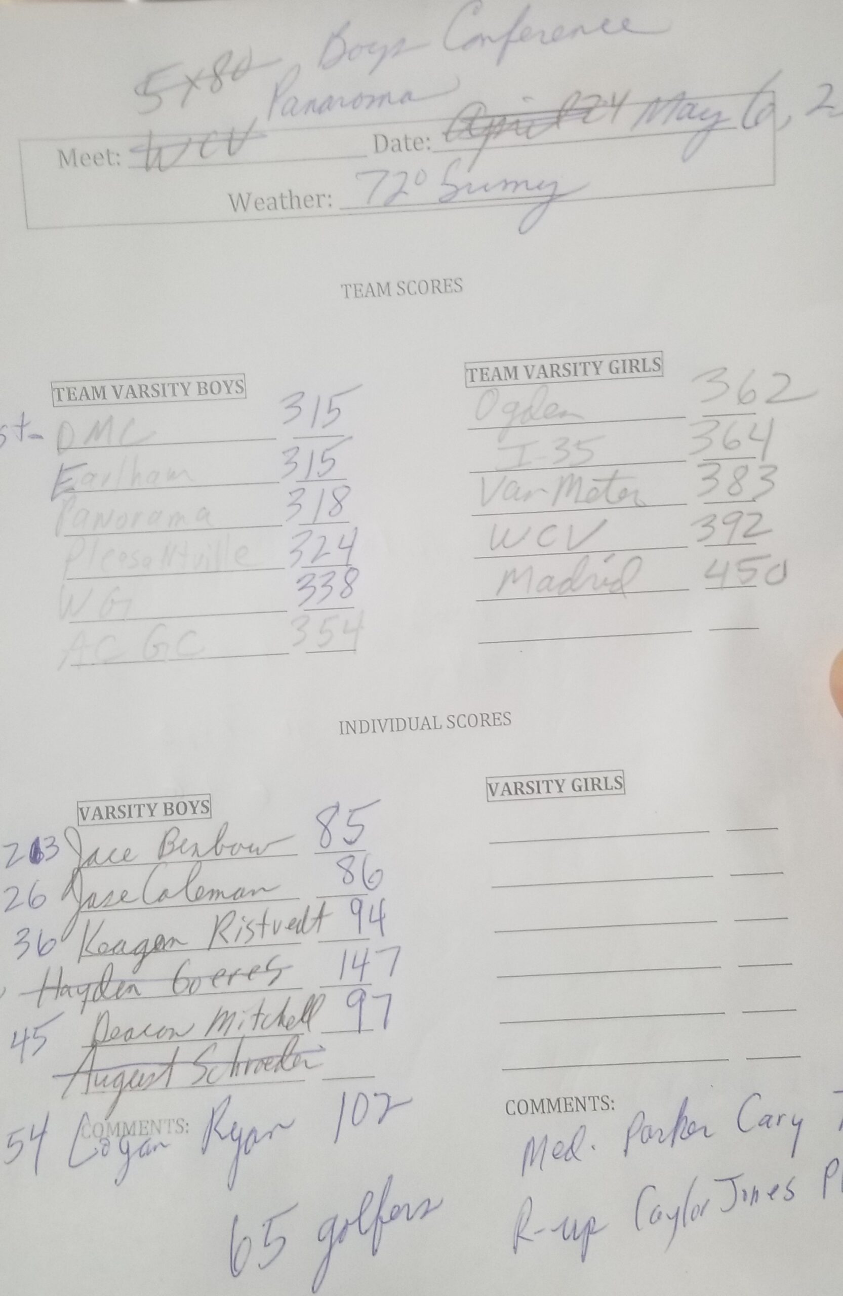 Ogden Boys Golf Results from May 6th (WCAC Meet)