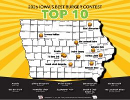 The final phase of the contest begins soon, as a panel of anonymous judges will visit each Top Ten restaurant to evaluate the burgers based on taste, appearance, and proper doneness (160°F). The 2026 Iowa’s Best Burger winner will be announced on May 1 to kick off May Beef Month.