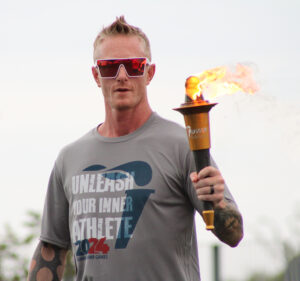 Joey Dursky with the Iowa Games Torch