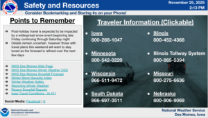 DES MOINES, Iowa—The National Weather Service Office in Des Moines has released an update on expectations for hazardous winter weather. Widespread accumulating snow is expected and will Impacting travel across most of Iowa. Snow is expected late Friday through Saturday night.