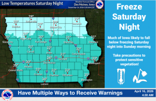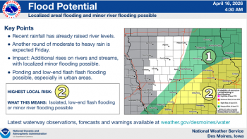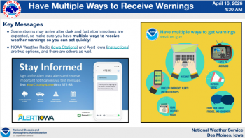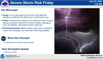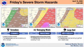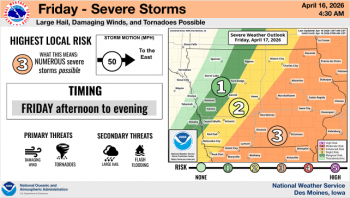 DES MOINES, Iowa—The National Weather Service Office in Des Moines has released updated information concerning the possibility for severe storms over much of Iowa Friday afternoon and evening.