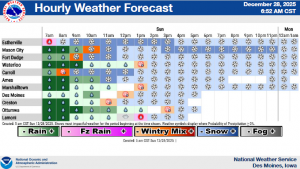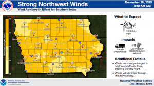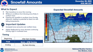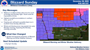 DES MOINES, Iowa—The National Weather Service Office in Des Moines has updated information about the following hazardous winter weather. Blizzard conditions and rapidly falling temperatures will occur over northern and north central Iowa Today through Monday morning.